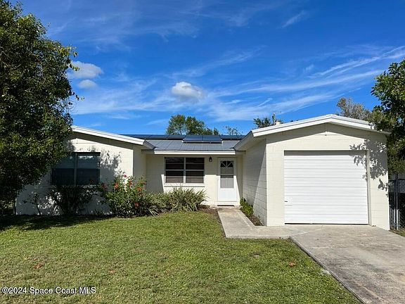 Perfectly situated in Sherwood Park, near Eastern Florida State College and Wickham Park, this four-bedroom, two-bathroom gem is the epitome of charm and functionality. The split floor plan boasts tile floors throughout, a cozy kitchen, and a versatile flex space perfect for an office, complete with in-house laundry facilities. Part of the garage is cleverly converted into a 10'x7' storage or workshop area with electricity. The fenced yard ensures privacy, while the spacious patio invites relaxation under the Florida sun. A durable metal roof, installed in 2011, pairs with a solar panel system added in December 2019, providing a 3,800-watt power source with an assumable ten-year warranty. This eco-friendly system significantly reduces HVAC electricity costs, especially during hot weather, and offers up to 2,000 daytime watts via a separate outlet during power outages. Conveniently located, this home is close to shopping, dining, and recreational activities.