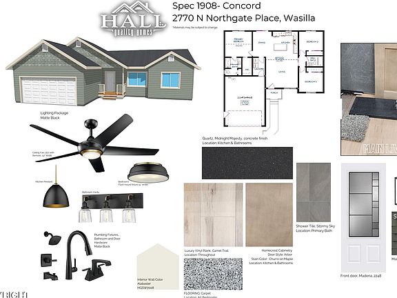 Hard to find split bedroom ranch with a well appointed master suite in this price range! The Concord model makes it work! A beautiful vaulted master suite with a huge WIC and tile shower, linen storage, and large vanity separated from the other two bedrooms by a vaulted living area open to a nicely upgraded kitchen featuring midnight black quartz, beautiful matte black fixtures, and premium cabs!This home is just getting started and the lucky buyer will be able to make exterior color selections. Completion will be early 2025. Call for more details. Photos are similar only. See Design photo for color selections intended for this home.