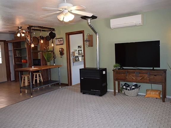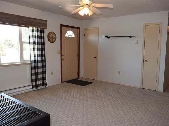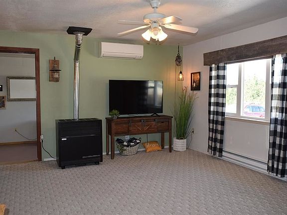 Well-maintained Ranch Home with 3 Bedrooms and 1 full Bath with Living Room plus Family Room or Studio. Fenced back yard with covered patio and wonderful mountain views. Convenient in-town location close to Pavilion. Home has electric baseboard heat, gas space heater in living room and pellet stove in family room, plus new mini-split system providing additional heat and cooling. Irrigation water for gardening, raised garden box, large mature trees, clothes line. Storage sheds. Room for RV or toys and RV electric outlet is installed. All appliances included. Metal roof installed 2015. Brand new gas range, new remodeled bath, new interior paint and carpeting freshly cleaned. Home has a radon mitigation system and a quiet and efficient attic fan. Best of all, no HOA or covenants.
