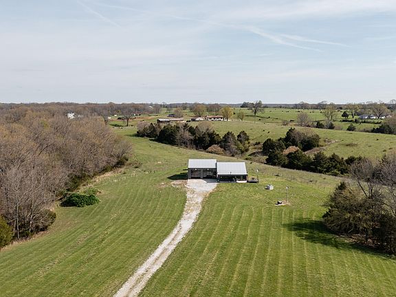 This gorgeous property being listed 2 ways ! One with Home and 7acres which this listing is and one with home and 3.5 acres. purchase of the full property home and 7 acres will include the storage containers behind the home. It just views all around here. Home located towards the back of property on top of hill over looking scenic ozark country ! Views are incredible even from inside of home with unique set up of 2 8ft glass garage doors on living quater side and 2 glass garage doors o the garage side. Home on living side is approximately 1200 sq feet but you have the garage side ready to use as more living space if you prefer.or need it ! That is the wonderful thing about shoust homes very versatile. Another consideration here on this property is makiing a VRBO with county approval. Would be incredible for family gatherings , reunions , retreats , add glamping tents etc so many things you could do here! Indian Tree Golf Course about 5 miles away and James River about the same. Approximately 45 minutes to Branson Mo and several Lakes. Abundance of wildlife here too! Open living concept in the home. You can relax in the evening on those warm spring fall and summer days on your covered patio turn your large TV around which is on a swivel pole and watch TV outside or just open the garage doors and stay inside looking at nature outside!Nice place to park you RV also and run into septic with easy hook up of electric in the garage.Garage has 200 amp service. The well is almost 900 feet deep underground electric pre run to both 3.5acre sections. Covered front patio is 30 x12 , patio or concrete pad in front of garage doors is 24 x 30 plus you have a 10 x 10 deck beside the home.. Laundry room is stubbed if you decide on another bath.Pellet stove in living area with 2 mini splits .Much more to see and say but you need to take the time to look at this property its a great get away or dream home.