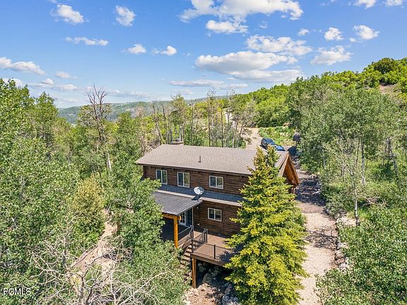 Tucked in the tall aspens and pine trees, this private, well-cared for cabin is the perfect getaway or full time residence. Located mid-mountain, this cozy cabin has stainless appliances, knotty alder cabinets, vaulted ceilings with exposed beams, picturesque windows, and walk out basement. New covered deck was installed earlier this year. Plenty of parking. Seasonal stream is the icing on the cake each spring and summer. Easy to show!