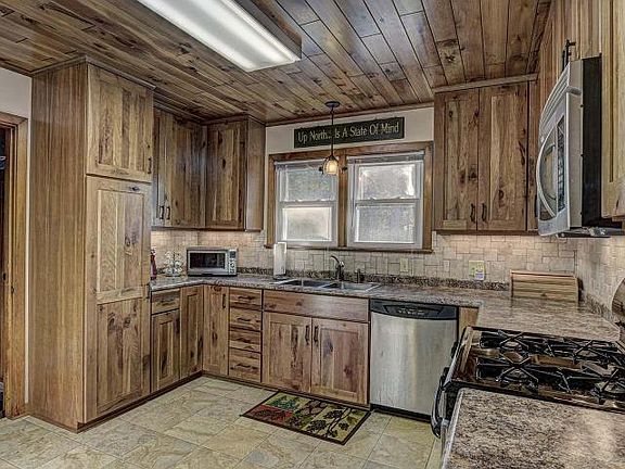 PICKEREL LAKE HOME - Located on a dead end private road in Eagle River, you'll find this updated quaint home sitting on over 3 acres with your own access to Pickerel Lake with 100 ' of frontage, sporting a 100' pier and boat lift. Garage, extra storage and a recently built boat garage make this a perfect spot for your fishing or relaxing down time. The lake offers excellent fishing and low boat traffic. Not fishing? You can merely enjoy the other lake recreation or just unwind on the "no see um" screened deck. This home has the character of 1948, yet the comfort of the modern windows, kitchen, and bathrooms. This home was also equipped with a forced air furnace making it available for year-round living! Vinyl siding and new AMR 100 year metal roof which transfers a 40 year warranty to any perspective buyer, will keep your retreat maintenance free. So come check this property out, it may not be there long!