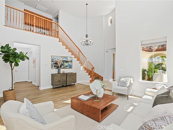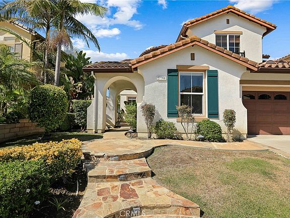 Enter the prestigious 24 hour guard-gated community of San Joaquin Hills and you will immediately be impressed by not only the curb appeal of 27701 Daisyfield, but the entire community. This luxury home sits on a large lot and provides panoramic excellent views of our local San Joaquin Hills and city lights. Enter the home through the tall arched doorways and you will immediately notice the soaring high ceilings, bringing your eyes up to the elegant curved stairway to the second floor. The formal living room with it’s high ceilings is located adjacent to the dedicated formal dining room with tray ceilings to entertain your family and guests. The main floor bedroom makes for a perfect space for your guest with its own en-suite bathroom. The kitchen features ample cabinets for storage, quartz countertops, farmhouse styled sink and a kitchen island to help you prepare your gourmet meals. The open concept kitchen area is adjacent to the family room and features a warm fireplace. The laundry room is conveniently located downstairs and has a utility sink. The backyard opens to spectacular views where you and your guests can enjoy the view of twinkling city lights, have your morning coffee or enjoy a glass of wine in the evening. As you ascend the elegant stairway, you will see additional cabinets for linen storage and a built in desk in the hallway. The raised master bedroom has a private balcony with a dedicated sunken retreat area features a cozy fireplace, television alcove, resort style Master Bath with dual vanity, tiled flooring, walk in closet, an oversized soaking tub, walk in shower and privacy toilet room. The balance of the bedrooms are well appointed and share a full sized bathroom in the hallway. Additional considerations is the large garage which will easily house 3 automobiles, this home is equipped with a central vacuum system, various ceiling fans, recessed lighting, wood SPC flooring throughout and more. This San Joaquin Hills Community is located in an award-winning school district, offers many amenities such as association pools and spas, a park, sports courts low HOA and no Mello-Roos. This home is just a short drive to many of our beautiful local beaches, various shopping centers with ample choices for dining and shopping and Stunning Golf Courses...