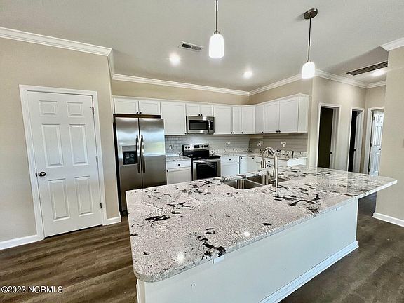This adorable new construction has wonderful covered porches including a second level balcony. The screened porch is super spacious 16 x 16. This functional floor plan has high ceilings, a large master suite on the main with a large walk in closet and laundry room adjacent. Upstairs are three additional bedrooms that would easily convert to a study, office or rec room. The hardie plank exterior will be white accented with black windows. Make your appointment today to view this beautiful home.
