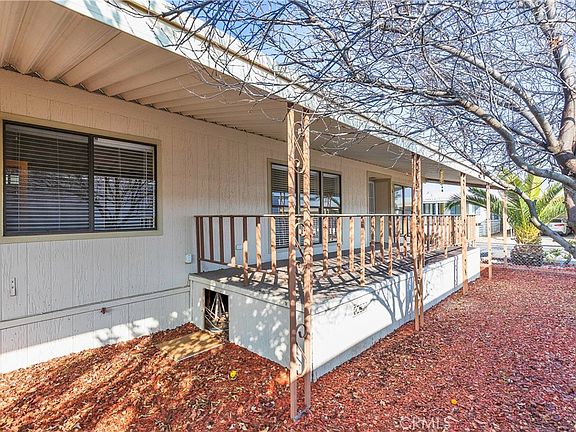 55+ Hillside Mobile Home Estates - Gated community - CLEAN - 2 Bedrooms / 2 Baths - Skyline Ramada with approximately 1,440 square feet of interior living space. Features an open floor plan with large living great room with laminate wood flooring and two dining areas ~ built-in hutch ~ lighted ceiling fan & new window blinds. Kitchen appliances include four burner gas stove top with exhaust hood ~ dishwasher ~ dual oven ~ disposal & the refrigerator can be included. Lots of cabinet space ~ pantry cupboards ~ plenty of counter space & bright fluorescent lighting. Primary bedroom with large walk-in closet & primary bath with dual sink vanity ~ garden tub ~ walk-in shower and built-in linen shelving. Spacious hallway bedroom with wardrobe closet. Hallway bathroom with walk-in shower. Indoor laundry room with newer washer & dryer that can be included. Additional features include; Neutral interior paint through out, new window blinds, lighted ceiling Fans, newer HVAC system, water heater. Electrical & plumbing recently serviced throughout. Large covered front porch, access ramp to back door, fruit trees & large detached storage shed within the covered carport & driveway. Community amenities include ~ Club House ~ Community Pool ~ Fitness Area ~ Billiards/Game Room ~ Sports Court ~ BBQ & Picnic Area. Conveniently located close to freeways, shopping, restaurants & more.
