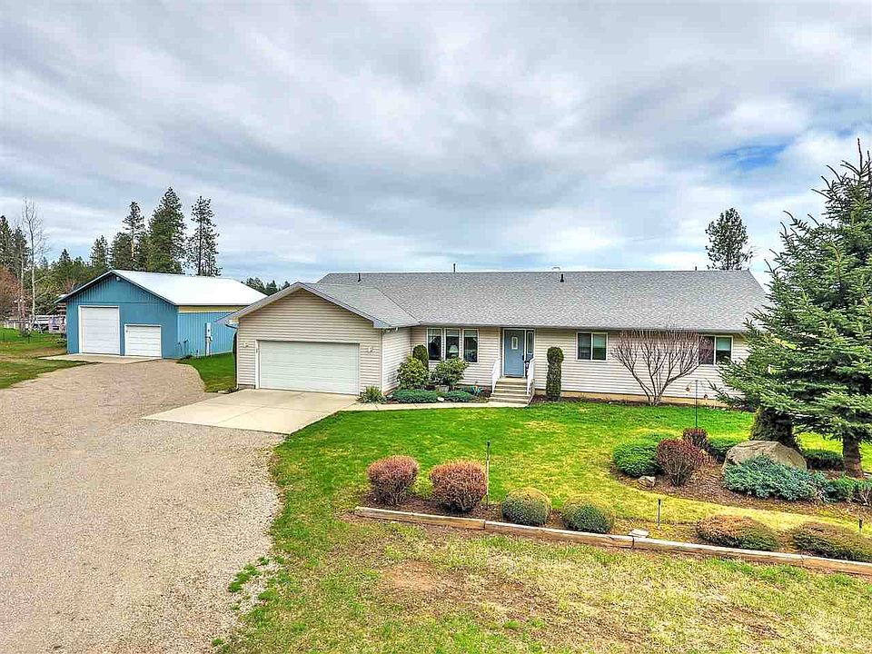 Well maintained rural 3 bed, 2 bath custom rancher on 1.6 acres with a stunning view of Mt. Spokane. Large kitchen with adjoining family room that opens to Trex deck perfect for entertaining. Extra deep lit closets and ADA accessible doorways. Beautiful landscaped garden with a 32' x 36' shop with RV hookups and a small room and half bath. 30+ gallon well. Unfinished basement with egress window gives you the opportunity to expand.