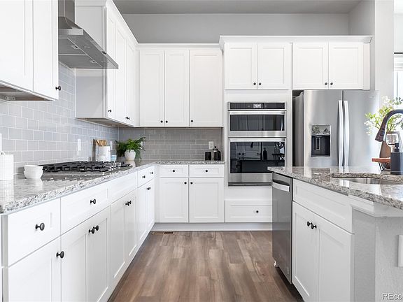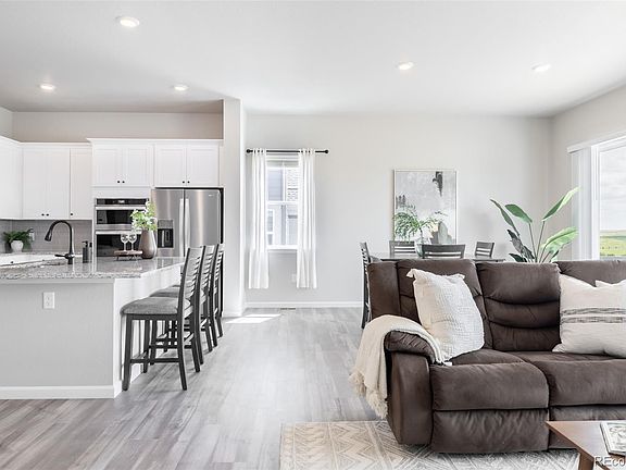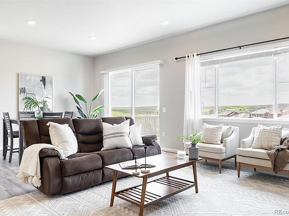 No need to wait for a new build, revel in sprawling golf course views from this move-in ready and inviting Southshore residence today! A welcoming exterior draws residents inward to a bright and airy layout showcasing tall ceilings and a neutral color palette. The home chef delights in a stylish kitchen beaming with all-white custom built cabinetry, sleek countertops, high-end stainless steel appliances (the oven even has an air fryer function!) and a large pantry. Enjoy late-morning brunch while seated at a center island or in a bright dining area with outdoor connectivity to a large deck. Generous natural light streams into a spacious living area through expansive windows boasting stunning views. Retreat to a sizable primary suite boasting a spa-like bath with a walk-in shower, double vanity and walk-in closet. Two additional bedrooms are complemented by a full bath offering ample space for guests. Endless potential for personalization awaits in an unfinished walkout basement and large backyard waiting for your green thumb. Ample storage space is found in an attached 2-car garage. Residents enjoy coveted neighborhood amenities, including the community pool only a one minute walk away, and easy access to the local schools, Aurora reservoir, restaurants and shopping.