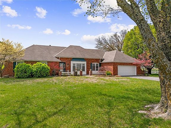All-brick ranch on 7+ acres in Lees Summit Schoolsset up for hobby or regenerative farming. Previously part of a larger offering with the orchard/berry patch, now available separately. Thoughtfully arranged for animals with 18 fenced pens for chickens, goats, sheep, or alpaca, plus multiple outbuildings and a covered patio overlooking pasture. Inside: formal living and dining, a main-floor family room with fireplace, and a country kitchen with ceramic tile, breakfast bar, and center island. Three full baths. Enormous, ready-to-finish basement to double your living space, storage, or workshop potential. Just 1 mile to 7 Hwyprivacy without sacrificing convenience. Adjacent 31 acres is available. 2025-11-16