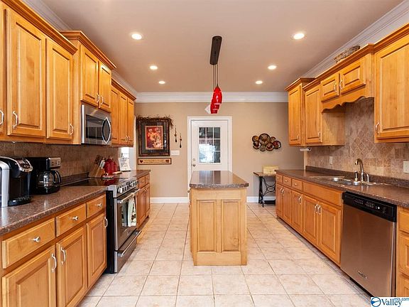 - RoomKitchenFeatures: Kitchen Island, Recessed Lighting, Tile, Eat-in Kitchen, Smooth Ceiling, Crown Molding