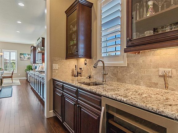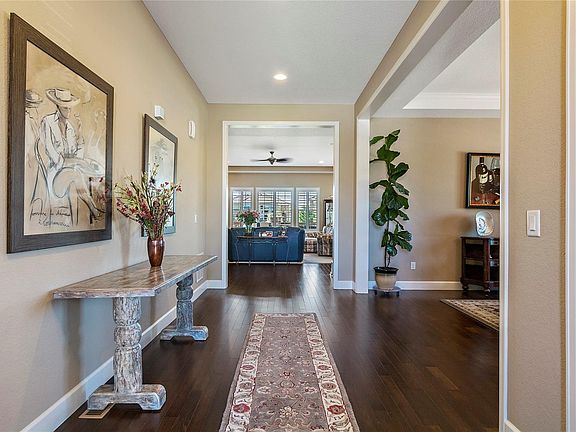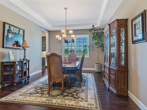 Stunning ranch style open concept home loaded with upgrades that looks like a model home. The gourmet kitchen has a bright eat-in area, extended cabinetry, stainless steel appliances, large center island, granite countertops, pantry, and hardwood flooring. The Butler's pantry leads to a formal dining room with hardwood flooring & coffered ceiling. The great room has hardwood flooring, fireplace, surround sound sytem, coffered ceiling and is the perfect extension of the gourmet kitchen. The private Master suite has a luxurious 5 piece master bath, coffered ceiling and custom cabinetry in the large master closet. There is a private study, powder room, main floor laundry, and 2 guest bedrooms with attached Jack & Jill bath. The lower level contains a Recreation room with surround sound system and wet bar, 2 guest bedrooms, a 3/4 guest bath, and a very large unique workshop area. The yard is fenced and has a lovely water feature. And views of the golf course! This home is very special!