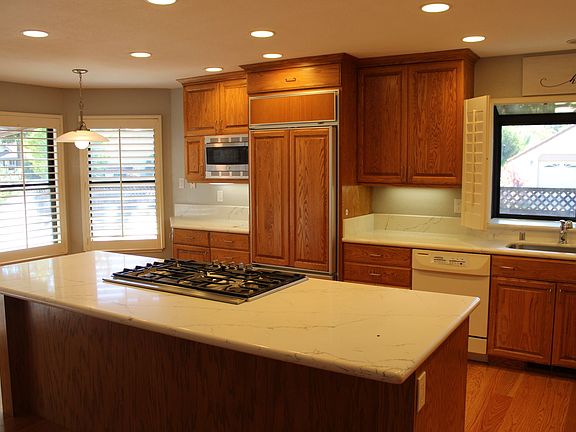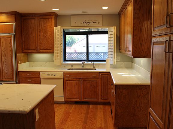 Large corner lot. Kitchen boasts granite countertops, oak cabinets, Thermador/5 burner gas cook top, Sub zero fridge. Oak HW floors, vaulted ceilings. Newer master bath. Open light & bright floor plan. Award winning San Ramon Valley schools & park near by. 2 car garage plus storage room.
