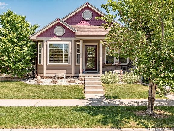 Charming three bed, three bath modern Victorian home in the adorable Harvest Gold neighborhood nestled against the foothills of Loveland. Beautiful walnut floors greet you upon entering this picturesque home with an open floor plan. The newly painted kitchen provides ample counter and cabinet space while overlooking the dining and living room. Proceed past the convenient main floor laundry room towards two large bedrooms connected via a Jack and Jill bathroom. The adjacent master bedroom has a dual sink en suite bathroom with a spacious walk-in closet. Access the unfinished basement from the living room and delight in the possibilities for additional bedrooms, a theater room or recreation area. The attached two car garage offers additional storage potential overhead if needed. Located on a quiet street with stunning views at the doorsteps of Rocky Mountain National Park, allow the allure of Loveland to fill your heart!