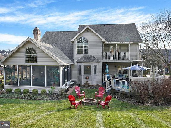 Gorgeous home located on a cul-de-sac in highly desired Chestnut Run. "Dallastown Schools" This home is not your typical 2 story... you will not see another one like this on the market today. The home features 5 bedrooms and 2.5 baths. 1st floor includes a beautiful family room with gas fireplace, cathedral ceilings, open kitchen, formal living, formal dining and breakfast nook. French doors in the family room open to a large screened in 3 seasons room perfect for relaxing or watching the game. Additional french doors in the formal dining room open to a large rear deck for an indoor/outdoor entertaining space. 4 large bedrooms (including primary with private balcony overlooking back yard and private bath with large jacuzzi tub), laundry room and loft area on the 2nd floor. Amazing finished lower level includes movie room/game room, large bedroom with a walk in closet and a bonus storage room. Hardwood floors. Three car garage. Wrap around porch. Central vac. Storage shed. Loaded with flower gardens. Must see this home to appreciate all the character! Quick settlement is possible if needed by the Buyer.