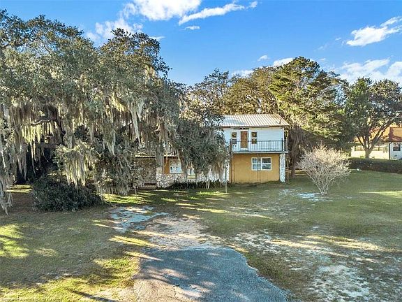 Large house with lake frontage AND acreage! What more could you ask for! This 3 bedroom, 2 bath home is nestled on just under 4 acres of land, right off the shores of Lake Damon in the desirable neighborhood of River Greens. A short golf cart ride away from the golf course and just step from the lake! As you enter the home, you will love the large, open floor plan. The kitchen is open to both the dining and expansive living room. The living room has a gorgeous stone fireplace with wood mantle. Wall to wall tile floors throughout the entire first level, including the 2 spacious guest bedrooms. The entire second floor is the master en-suite that has new wood laminate floors (baseboard/trim still needed) and a balcony that has gorgeous views of Lake Damon! A portion of the back yard is fenced. There is a 30'x60'(+/-) pole barn towards the back of the property with a section enclosed as a garage. Plenty of room for all of your toys!! Come see this home today!