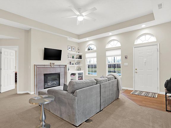 This Move-in Ready, Low-Maintenance 2 BR 2 BA Condo in the desirable Stone's Bay of Center Grove is a MUST SEE! All exterior maintenance (including roof, windows, and garage door), lawn care, landscaping, and trash are included in this HOA! PLUS, this home has a NEW Roof, NEW Trane Furnace, and NEW Water Softener. Custom features throughout! All new interior paint including walls, ceilings, doors, and baseboards. Updated Lighting. New Flooring Throughout; Carpet and Luxury Vinyl Plank. The Great Room features a Tray Ceiling, Built-in Bookshelves, and a Gas-Log Fireplace; perfect for the cold-winter nights! You will love all this kitchen has to offer including Quartz Countertops, Cherry Cabinets, New Appliances, Breakfast Bar, Formal Dining Area, PLUS a Separate Butler's Pantry that has endless possibilities! The Primary Suite features a Cathedral Ceiling, Built-in Shelving, and a Walk-in Closet. Bedroom #2 could be used as a second primary bedroom with its double closets and hall bathroom. Multiple uses available for the Sun Room that invites in so much natural night! Continue through the Sun Room to the side patio with partial fence and pond view! Amenities include Community Clubhouse, Fitness Center, and Pool.