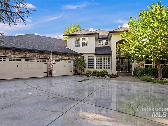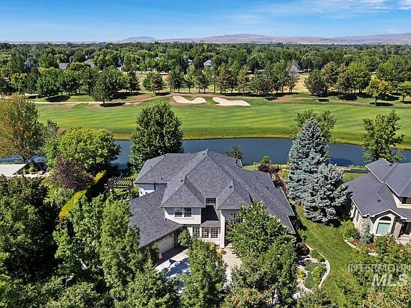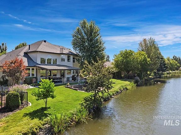 Perched on the waterfront and 9th fairway in Banbury Meadows, this stunning former Parade Home offers mesmerizing views. Custom cabinetry, crown molding, detailed millwork, wainscoting, coffered ceilings, hardwood floors, granite counters, travertine floors, and expansive windows accentuate the impeccable craftsmanship throughout. The beautifully landscaped property features two inviting patios with new awnings, providing a serene oasis. Step inside to discover a foyer, gourmet kitchen, formal dining room, office, and a luxurious master suite. Additional highlights include a second master suite, a spacious great room with a gas log fireplace. The upper level showcases two bedrooms with built-in desks, a well-appointed bathroom, and a versatile 17X13 bonus room/media room, providing ample space for relaxation, work, and entertainment. With its picturesque waterfront setting on the golf course, and enchanting cul-de-sac location, this home offers a coveted blend of tranquility, luxury, and convenience.