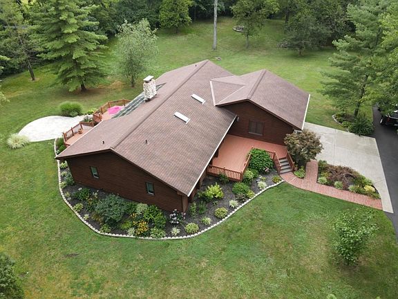 Gorgeous 3bdr 2 full bath, open floor plan w/ cathedral ceilings, hardwood floors, 2 fireplaces, walkout basement w/ huge rec room, blacktop drive, pole barn & much more. Step out of the sunroom onto the deck surrounded by beautiful landscaping & leading down to stamped concrete patios outside of the basement. All sitting on 5 acres & located right off of SR 125. Don't miss out on calling this place home! Showings start 8/18/21