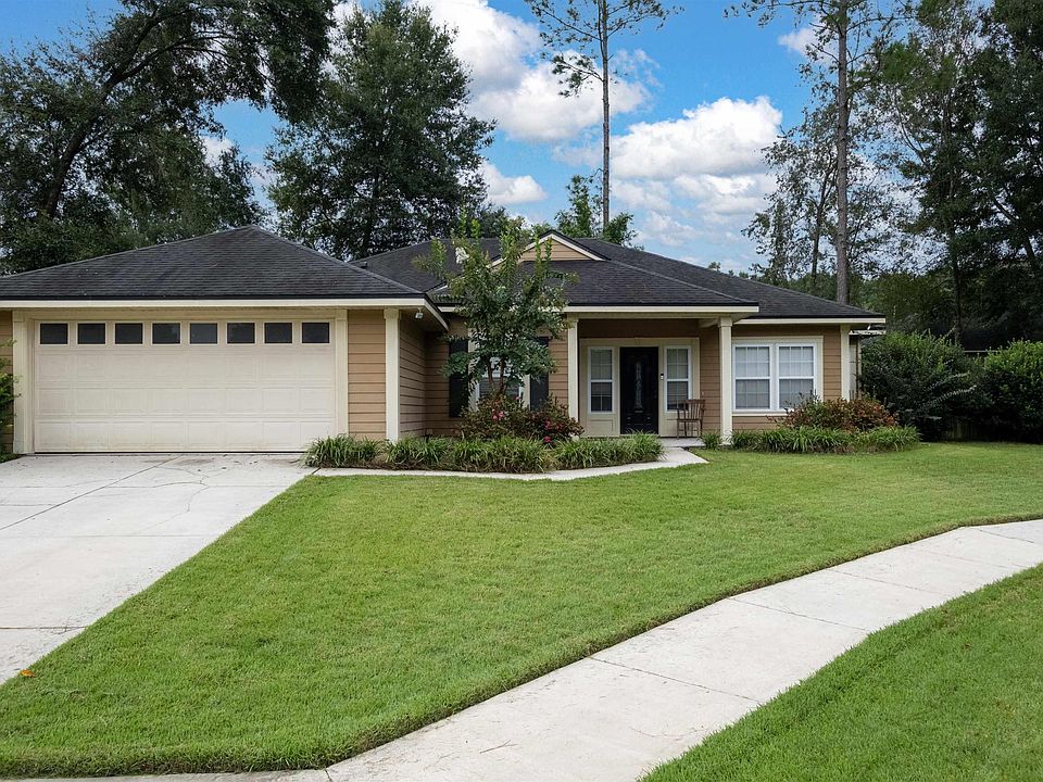 This nearly 2000 sqft well maintained, Original Owner home boasts 4 beds 2.5 baths on a cul-de-sac in Bailey Estates. Beautiful detailed Crown Molding in living room, kitchen, dining room and Master bedroom. Large open Kitchen with granite countertops, corner pantry and breakfast bar for easy meals. Large front windows bring in natural light to the living room. Spacious owners suite with granite countertops and dual sinks. Big interior laundry room has a large utility closet. Great back patio with new pavers for added entertaining space. Fully fenced back yard. Property also includes water softener/purifier. Just a short drive to Downtown High Springs with great shops and dining. Only 20 Minutes to Gainesville.