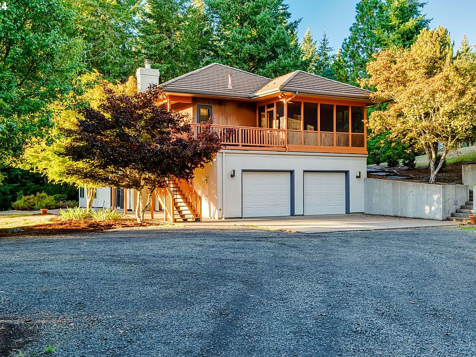 Back on market, no fault of the property! Possible owner carry with large down if can close by year end. Welcome to Serenity. This secluded Hilltop estate is nestled right in the middle of wine country with views that will stun! It is the best of both worlds, sitting just minutes from Sweet Cheeks and Silvan Ridge Wineries while also only a 15 minute drive to town where you can enjoy all that Eugene has to offer. This beautiful custom built contemporary home provides an open, light and bright floorplan which includes a large livingroom with vaulted ceilings, picture windows and a cozy woodburning fireplace perfect for those cool fall and winter evenings. The kitchen has counterspace and storage galore! It boasts a cooking island, granite countertops, hardwood floors, pantry and views of the garden. Step directly from the kitchen to a screened in porch perfect for enjoying your morning coffee or being close to nature, even during those winter months. On the main floor sits the Primary Suite which features wall to wall carpet, built-ins and a large walk-in closet. The en-suite is complete with garden tub, walk-in tile shower, dual sinks and tile floor. Downstairs you'll find 2 well appointed additional bedrooms, one with double closets and the other with sliding doors out to a patio. The lower level also includes an oversized 2 car garage complete with separate electrical panel wired for generator,large utility room and laundry room with cabinets and storage. Down the driveway sits a 22'x27'shop with it's own dedicated 220 amp panel, dog bath and finished area that's perfect for an office, studio or workout room. With it's rolling hills, fenced garden area, pasture for animals and wooded tree line this property is a truly a home you must see in person to appreciate all it has to offer.
