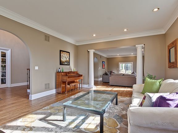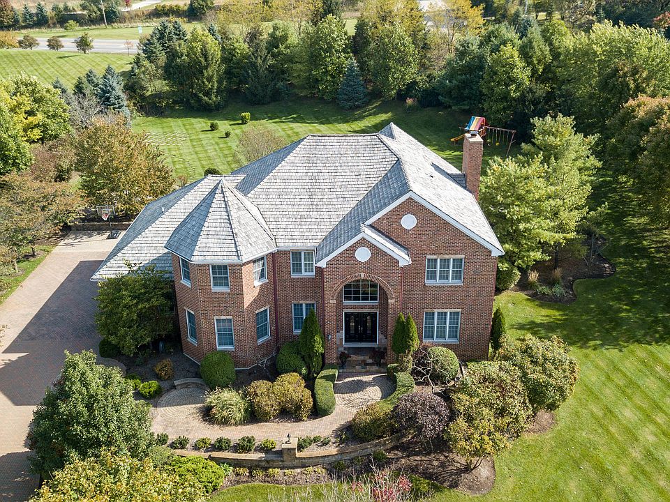 This all brick custom executive home is stunning inside and out. The beautiful two story foyer greets you as you enter. The formal living room is connected to the family room, offering an open concept floorplan. The gourmet kitchen boasts cherry cabinetry, granite counters, commercial grade stainless steel appliances, plus a large island with seating. The dining room is flanked with custom wainscoting. The master suite offers a vaulted ceiling and very spacious room. The lux bath features heated flooring, his & her walk in closets, and unfinished space to expand the closet if needed. The other bedrooms all have baths. The lower level boasts a rec room, theater area, bar, playroom, exercise/additional bedroom with full bath, and game room all with 10 foot ceilings. The exterior is gorgeous offering a screened gazebo, firepit area, koi pond, large brick patio and amazing views overlooking the professional landscaped yard. The 3 car garage is heated. Additional amenities include architectural details and hardwood flooring throughout, 1st floor bar area, 1st floor laundry, and brick paver driveway. Truly a terrific place to call home.
