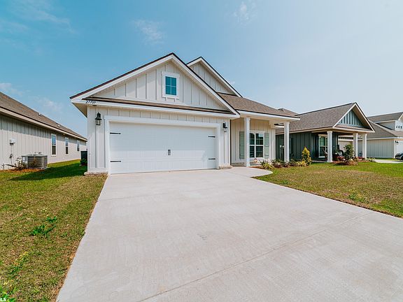 UNDER CONSTRUCTION. Welcome to the Jubilee floor plan by Truland Homes located in French Settlement. This 3 bed/2 bath home is 2,063 sq ft and loaded with great features and finishes including luxury vinyl flooring throughout the entry, kitchen, and living spaces. You’ll love cooking in this fabulous kitchen with painted cabinets, granite, tile backsplash, a large center island with seating, and stainless-steel appliances including a gas range. The Primary bedroom is a nice size with luxury vinyl flooring, a tray ceiling, and a lovely en-suite with dual vanities, granite, painted cabinets, a large walk-in closet, a separate linen closet, and a curbless ceramic tile shower. There are two additional bedrooms and a full bath all on one level. This home is built to Gold Fortified standards and includes many energy-efficient features like a Smart Thing Hub, Ring Doorbell, Smart Thermostat, storm shutters, and more. The anticipated completion date is March 2023. One or more principles of the selling entity are licensed real estate agents/brokers in the State of Alabama. Floor plans and elevations shown here are for example, only and are subject to lot specifics, upgrades included, and neighborhood requirements.
