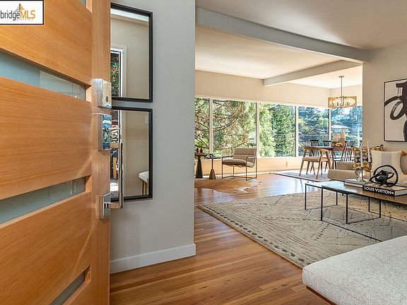 Nestled in a secluded wooded setting on over 1/3 acre, this chic Mid-Century retreat has been thoughtfully updated throughout.The open light-filled living and dining rooms boast expansive walls of glass with stunning tree-top views.The updated kitchen with quartz countertops and brand new high-end appliances opens out to a charming stone patio perfect for relaxing and entertaining guests. On this main level you will also find three bedrooms (3rd bedroom is staged as an office), and two beautifully remodeled bathrooms. Downstairs is the family room which offers flexibility and could be used as a rumpus room, office, or a bedroom. The newly landscaped park-like garden has a lovely orchard with a variety of fruit trees such as orange, grapefruit & lemon. And the planter boxes are ready for you to plant your favorite veggies! Close to schools, popular parks for hiking & biking, Montclair Village & HWY 13-24. This is truly a special property!