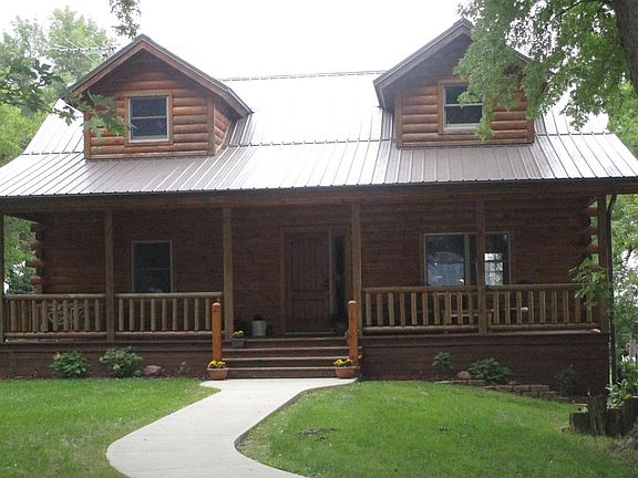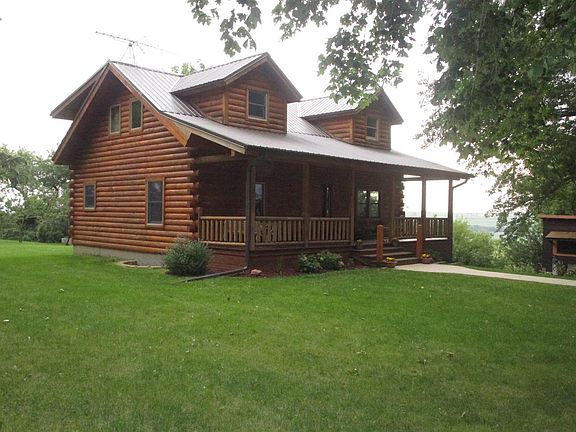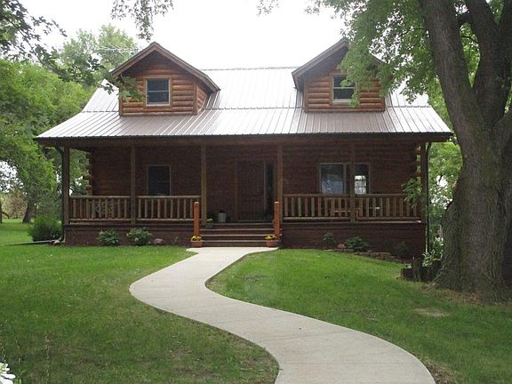 PRIVATE RETREAT...Country living at its greatest with this newer 2 story, custom-built log house. This secluded acreage near Exira has a beautiful covered porch to greet you. Features on the main level include open living, dining, kitchen, deck off kitchen on the North, vaulted, beamed ceiling and master suite. Second level includes 2 bedrooms, full bath and living space. Lower level walkout has family/rec area, bath, bedroom and utility room has a Geothermal furnace. Walkout to patio on the East side. All levels have great views. Several outbuildings include barn and a remodeled hog house that's a great workshop. Time for you to call and see your new home.