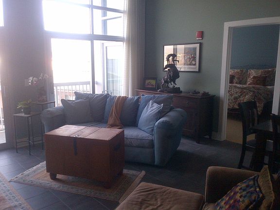 This 2BR/2BA condo is located in one of the most sought after WATERFRONT buildings in the area with breathtaking views from the living room and bedrooms! The unit comes with 2 secure garage parking spaces (on the same level as the unit). Gorgeous wide open floor plan with slate floors, over $10K in window treatments convey, floor to ceiling windows, upgraded chef's kitchen, stone countertops, stainless appliances, plenty of cabinet and storage space. 24 hour security, doorman, walk to restaurants, nightlife, shopping. Convenient to downtown, I83, and I95. Discount access to pool across the parking lot and $25 one time fee to join new fitness center.