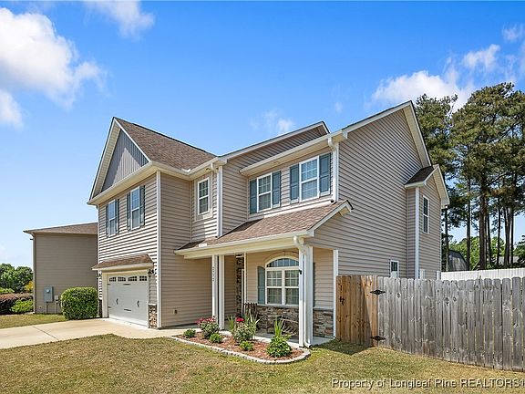 This charming 4-bed, 3.5-bath single-family home, built in 2017, offers approximately 2,592 square feet of comfortable living space on a 0.25-acre lot. Located in the sought after Jack Britt school district, this home has been well-maintained and feels almost brand new. Step inside to discover upscale features including wainscoting in the foyer, mudroom, and upstairs laundry room. The large eat-in kitchen boasts granite counter tops, an island with a bar, stainless steel appliances, and a gas range – perfect for the home chef! The inviting great room features a cozy fireplace with built-in bookshelves. The master suite is a true retreat, offering dual vanities, separate his and hers walk-in closets, and a separate shower and garden tub. The large garage offers amble storage space along with the large storage shed out back. Enjoy the lovely North Carolina weather on the beautiful screened porch and patio. DON'T LET THIS ONE GET AWAY!