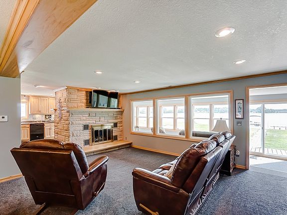 Over 120' of lakefront at the beautiful Hoffman Lake. This lake community is just a short commute town conveniences, major retailers and schools. This home offers a spacious floor plan with incredible lake views from nearly every room in the home. Fully remodeled, giving you a stunning kitchen with ample cabinet space. And a limestone fireplace wall accents the living and dining areas well. Just off the living room, an enclosed lakeside porch to enjoy the views. At the exterior you'll enjoy the deck and spacious yard plus a detached garage for storage. Schedule your private tour today!