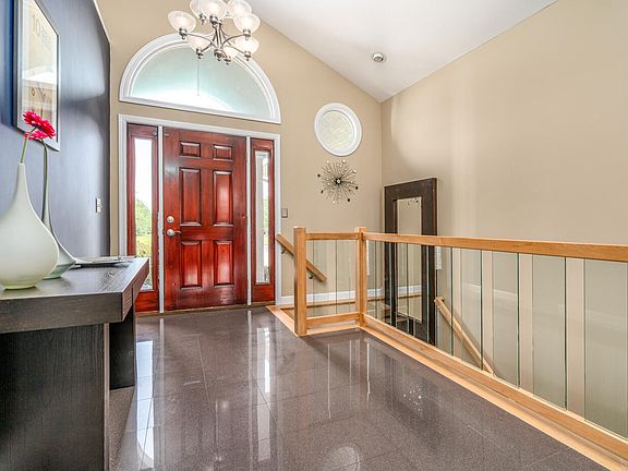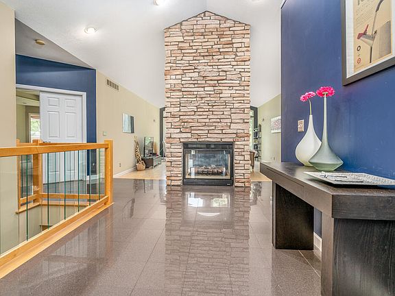 Spacious master bedroom with slider leading to deck overlooking your private back yard so you can enjoy those morning sunrises and a cup of coffee. Master Bathroom includes two separate vanities, large bathtub, and newer tile shower. Walk in closet with plenty of room. Downstairs you will find two additional large bedrooms offering ample walk in closets, slider doors giving natural light and access to the back patio. A large family room overlooking the private back yard with a small kitchenette/wet bar and island for entertaining downstairs or even a mother in law suite and 3rd Full bathroom. Radient heat warming the downstairs along with forced air. Giving you duel zone heating and cooling. Along with plenty of storage in the additional unfinished space in the basement. The land behind the home is protected and is close to the portage creek. Or head down the private lane leading to Angels Crossing Golf Course.