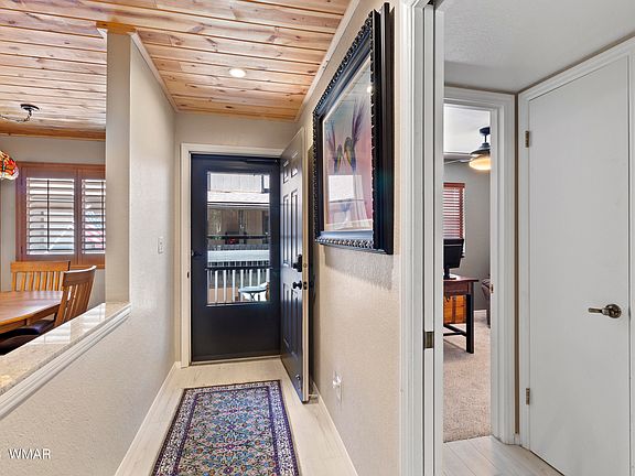 Fantastic location at Sports Village Phase Unit 3. This upstairs unit has been decked out with new wood-look, white wash tile flooring and updated tile and granite bathrooms. Gorgeous! Kitchen updated with granite counter tops and new 'slate' stainless appliances. Three bedrooms and two baths in a split floor plan. Huge master bedroom. Large laundry/storage room off the master. Vaulted ceilings make the 1515 sf seem bigger. Heated with an ETS heater and a pellet insert in the fireplace. Decks front and back to enjoy the weather. Move in ready. HOA is $2145 per year. Trash included in HOA fee. Located near everything you'd want in Pinetop; restaurants, recreation, shopping, health care. No rental restrictions at this time.