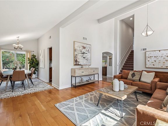 Welcome to Madrid Del Lago in Mission Viejo located less than just 1 mile away from all the activities Lake Mission Viejo has to offer. Whether you enjoy walking, hiking, biking, kayaking or simply staying close to home, you've come to the right place. As you step inside this 4-bedroom, 3-bathroom residence, you'll immediately be struck by the expansive living room featuring vaulted ceilings, creating a sense of openness which seamlessly integrates the living, dining and kitchen areas. The kitchen is complete with granite countertops, a breakfast nook and plenty of cabinet space while the cozy family room features a built-in entertainment wall with a beautiful stone fireplace. The main level offers a thoughtfully designed bedroom and bathroom, providing convenience for guests or multi-generational living. As you make your way upstairs to the primary bedroom, you'll be greeted by a serene retreat with its own private deck—an ideal spot for morning coffee or evening relaxation while enjoying views of the surrounding landscape. Additional highlights of this home include a second fireplace, enhancing the warmth and ambiance throughout, and a built-in BBQ on the outdoor patio, perfect for alfresco dining and summer gatherings. The property also features an efficient solar system, ensuring both energy savings and a reduced environmental footprint. This home seamlessly blends modern amenities with inviting living spaces, offering both functionality and luxury.