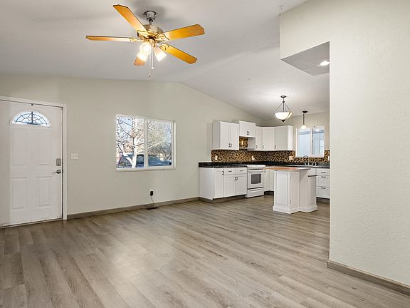 Charming home featuring a split-bedroom layout with 3 bedrooms and 2 baths. Enjoy owned solar power, central air, a water purifier, and an open-concept living area with vaulted ceilings and a skylight. Recent updates include new paint, cabinets, appliances, and vinyl privacy fencing. The spacious backyard, complete with a deck, backs up to vacant land, offering breathtaking views of Uncompahgre and the National Monument. Plus, there's space for an RV or extra vehicle parking. Don't miss out on this beautifully updated home!