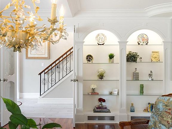 Backing onto benson parkLush landscaped groundsStone pathwaysCovered patioCustom cabinetryCoffered ceilingsBespoke cabinetry