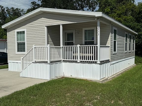 This beautiful 2 bedroom, 2 bathroom 2020 Skyline doublewide manufactured home is still in "like new" condition and has barely been lived in. It features an open concept living area with a generous primary ensuite bedroom & bath as well as a generous 2nd bedroom and hallway bathroom with tub. The home features a covered front porch to enjoy those Florida sunsets! This gorgeous home comes with all appliances including washer/dryer, as well as being fully furnished and ready to move-in! This late model beauty is a rare diamond that will surely be in high demand. Make an appointment with us today to make sure you don't miss out on this one of kind opportunity!