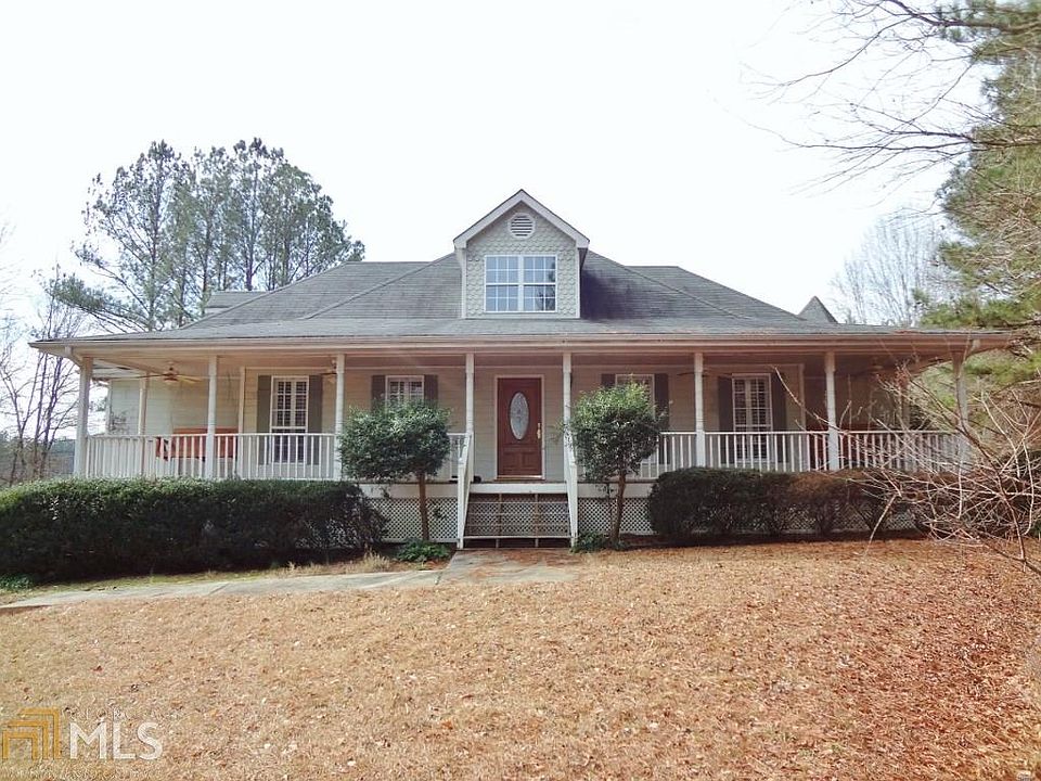 Beautiful 3BR/3.5BA on 3.64 Acres. Covered front porch. HW floors on main. Foyer, DR, spacious GR w/ open stairway and FP, EIK w/ double oven, solid surface counters, MW, DW, exposed beams, and walk-in pantry. Owners BRs on main floor with wide plank pine floors and luxurious bath. Second BR w/ private bath on main floor. Second floor features 3rd BR and BA and bonus room. Almost full basement with concrete floored crawlspace, 3 rooms semi-finished, boat door and unfinished space for storage. Sold-as-is, no disclosures, some TLC needed. Social Circle schools. Road frontage on Alcovy and County Line Rds. Estate-owned home.