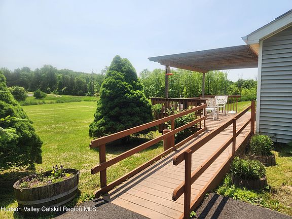 Situated amongst Farms and Fields in highly desirable Accord, in the Beautiful Hudson Valley, is a modern, safe place, to spend every stage of your life! This home is one level, ADA Accessible, has Solar Energy and a connected Standby back up Generator that clicks on automatically! I haven't mentioned the Vaulted Ceilings, Open Concept and the Gorgeous deck with Wood Pergola to relax, BBQ and enjoy the serenity and peace out back. Matching shed for storage. The indoor pictures are showing an ongoing Estate Sale. Contents will be gone asap and definitely before closing. Mohonk Mtns can be seen in the distance. This location is Centrally located, just 7 minutes to Stone Ridge, 5 minutes to High Falls and 5 minutes to Kerhonkson. 15 minutes to New Paltz and 10 minutes to Rosendale! Fabulous Food, Summer Fairs, Rock Climbing, Hiking, Kayaking, Hang Gliding, Swimming, Music Festivals, Skiing, Snow Boarding, Art Shows, in every direction and minutes away! Just under 2 hrs. to GWB! Home and Property are in wonderful move in condition!