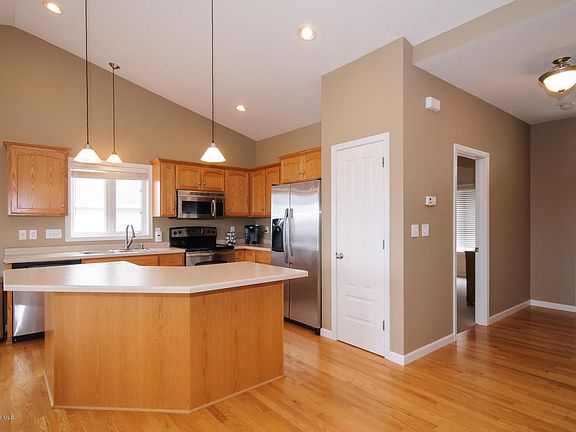 This impressive ranch style home offers an open floor plan & boasts many amenities including 4 spacious bedrooms, 3 bathrooms, vaulted ceilings, gas fp, kitchen center island w/ stainless steel appliances, hardwood floors, a master suite w/ double sinks, tiled floors & walk-in closet, main floor mud room, freshly painted interior, new carpet in living room, paneled, finished lower level