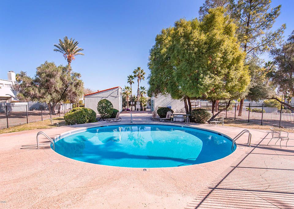 Beautiful updated town home on Tucson's West side! Close to U of A and Pima CC West. Updated kitchen with newer cabinetry, appliances and counter tops. Freshly painted interior and new carpeting. Updated HVAC unit. Large master bedroom with tall ceilings and balcony. Rooms are large and cozy. This home has tons of natural lighting. One covered parking space and one designated uncovered spot. EZ to maintain rear yard. Community features lush grounds, 2 sparkling pools, common area to gather and BBQ and plenty of guest parking! HOA fee covers building exterior, roof, sub termites, water, common areas and more. See agent only remarks.