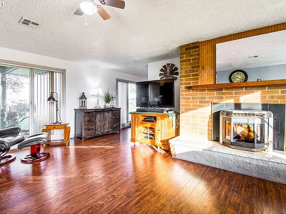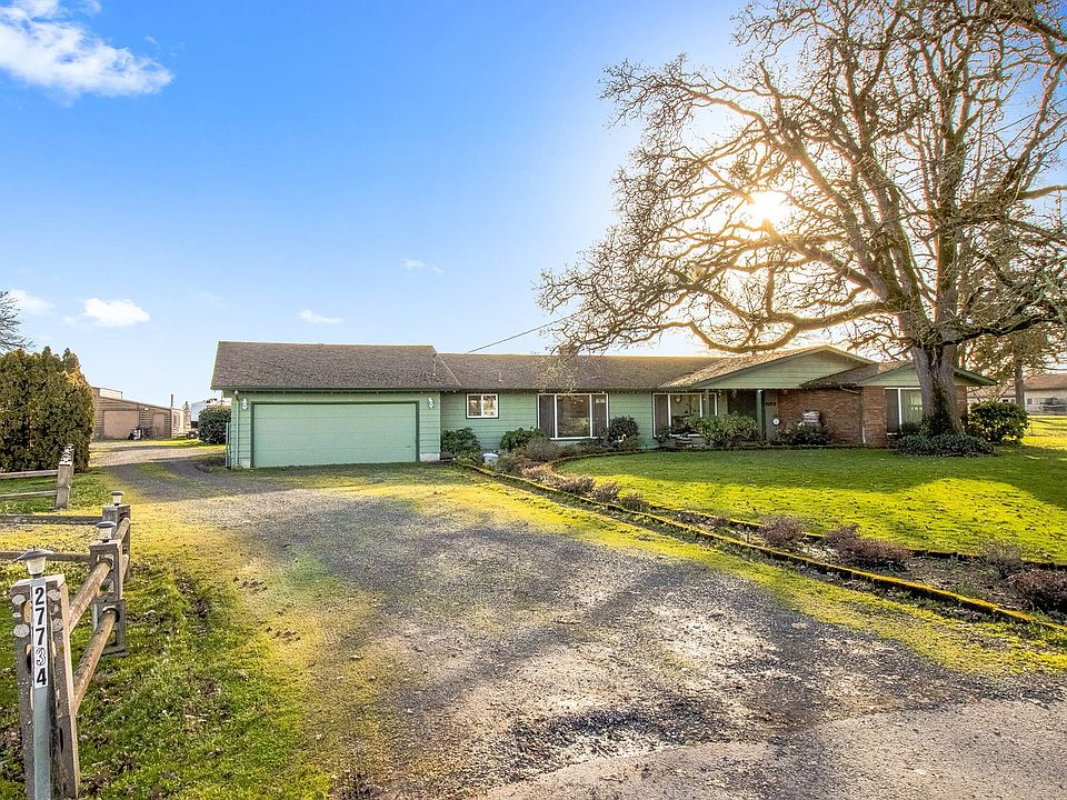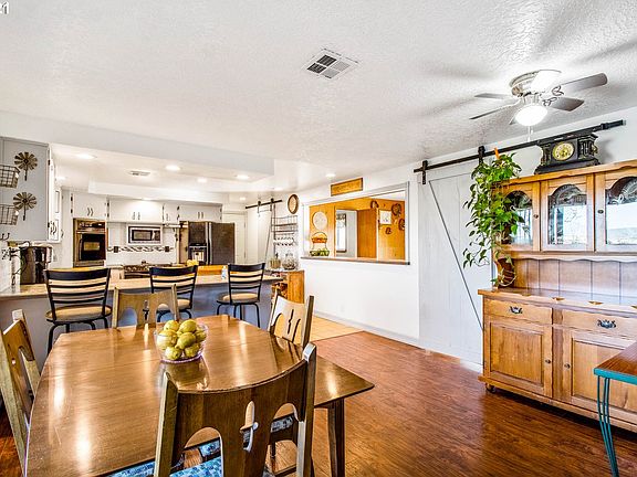 DIVIDABLE LAND! Come and enjoy this single level home with its perfect location near Fern Ridge Lake & Eugene. Features include updated kitchen and newer laminate floors. Great, energy efficient, floor plan with heat pump & double pane windows. Along with a cozy pellet stove to add warmth. Indoor utility room. Garden, farm, and/or continue to build on this expansive 14 dividable acres. Or simply relax & enjoy its privacy. Property includes large 3 bay shop with 220, and separate barn.