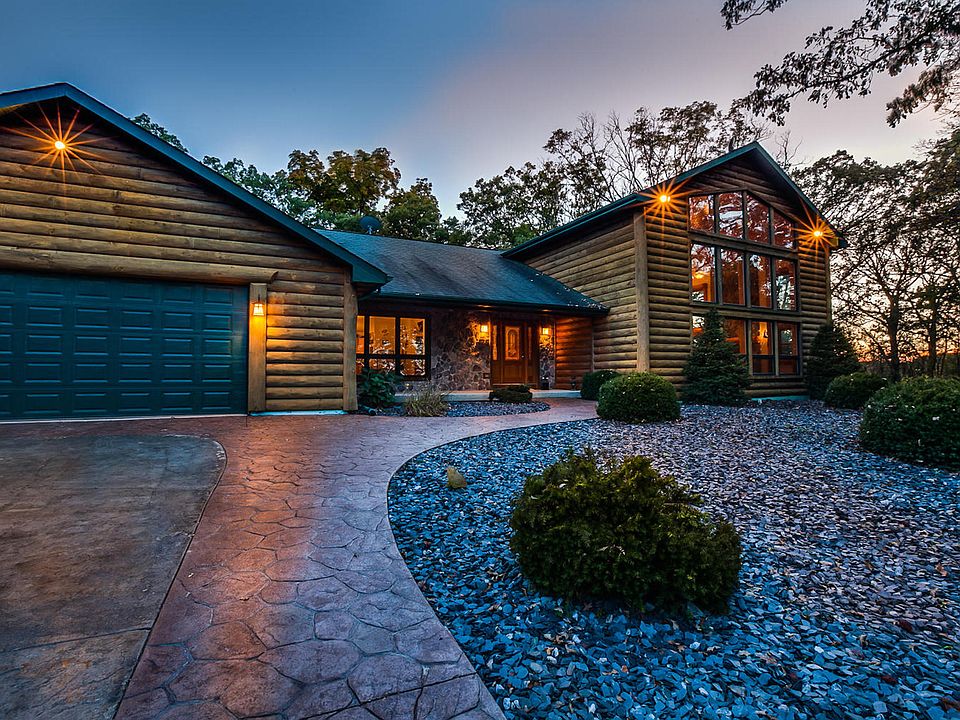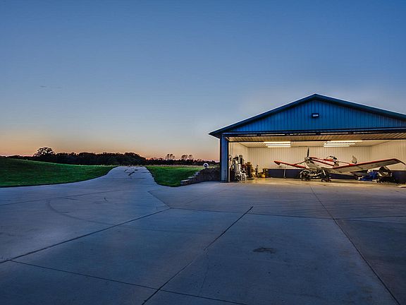 COMPLETELY CUSTOM 3729 sqft log cabin home offers OPEN CONCEPT kitchen w/ counter-height breakfast bar, large dining area, & sliding doors to concrete patio. Separate dining room & 2-story great room w/ STONE FIREPLACE & WALL OF WINDOWS. Wood staircase leads to master suite w/ ensuite bathroom, 2 WALK-IN CLOSETS, & private deck overlooking 7 acres of hardwoods. 1st floor has another 3 beds & 1 bath. Large mudroom/laundry room & ½ bath perfectly located between kitchen & attached 3 car garage. Unfinished basement has tons of extra storage & WOOD-BURNING STOVE. Outside check out the 5 ACRE LAKE W/ BOATHOUSE, ATV trails around the property, PRIVATE 1500' RUNWAY, 40'x44' heated airplane hanger & 60'x80' POLE BARN w/ office, full bath, and in-floor hydronic heat. MUST SEE, TOO MUCH TO LIST!