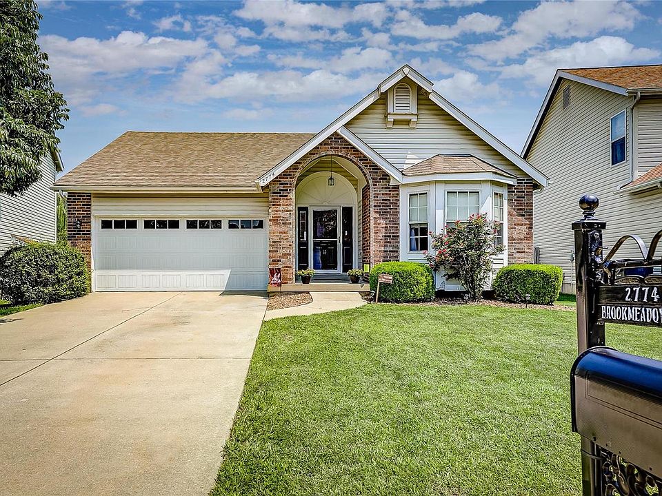 Check out this adorable ranch just hitting the market! You will LOVE the location - only minutes from Scott Air Force Base, SWIC community college, conveniences, highways & employment opportunities! This home is situated in Brookhill Estates with a subdivision pool, walking trails, pond & no neighbors at the back! This ranch elevation features a full brick front with arched covered porch with nice landscaping. The open floor plan layout offers an entry foyer, a master suite with vaulted ceiling, WI closet & private bathroom. The family room opens to the kitchen area &f offers tons of natural light overlooking the level backyard & field. Recently re-painted, this move-in ready home also includes newer luxury vinyl plank flooring, new exterior rear door, replaced garage door opener & miscellaneous updates throughout. There is a 2 car finished "man cave" garage that is heated & tons of potential in the unfinished basement with rough-in plumbing! You won't want to let this one get away!
