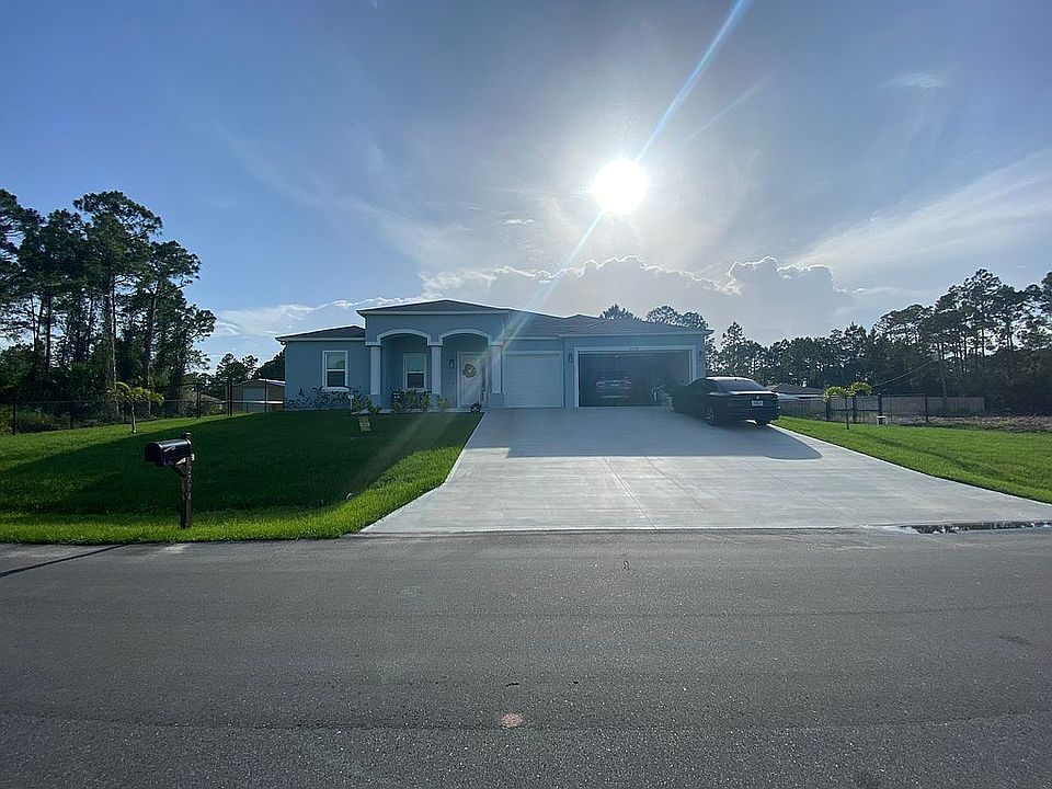 Enormous blessing! 4 Bedroom 3 Bath 3 Car Garage with a den. This awesome layout has 10’ flat ceilings throughout, lifetime warranty waterproof vinyl plank throughout, 5-1/4” baseboards, 8ft doors, 9’ Triple Slider, Impact Windows , 2 Master suites, 2 roll in showers 1 Tub all tiled to the ceiling. Staggered slow close shaker style cabinets. Wired for 50 amp generator/generator pad, Two sinks in the kitchen both with R/O systems and an R/O line to the fridge. Mud room. Walk in Pantry