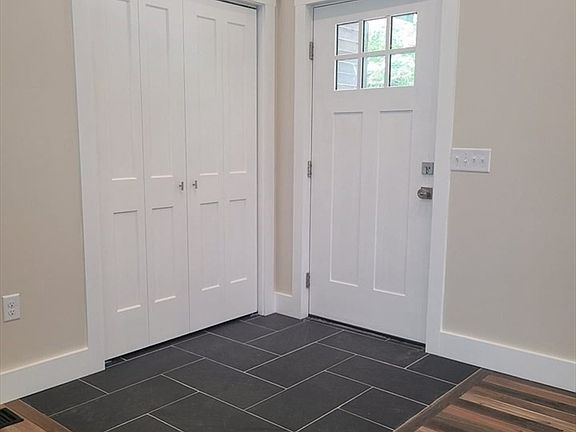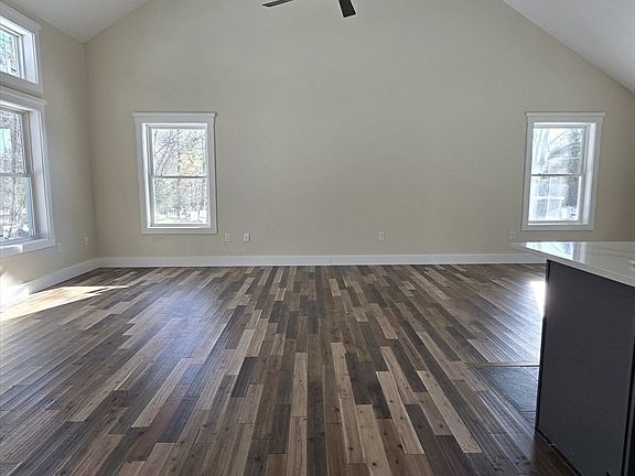 Modern meets country! Energy-efficient ranch on 1.73 acres. Stone veneer framed entrance. Open living/dining/kitchen w/cathedral ceilings. Acacia hardwood flooring, oversized windows, ductless heating/cooling system. Kitchen w/quartz countertops, 8' island, DE Jamestown cabinets, shiplap backsplash, fingerprint resistant stainless steel appliances, black stainless steel farmers sink, modern hood vent. French doors off dining open to 16x12 deck. Hall leads to first-floor laundry w/double doors, 3-brs, full bath w/floating vanity, tiled floor, deep soaking tub. Primary bedroom has large walk-in closet w/barn door. En suite bath has a barn door, tiled floor, DreamLine glass shower w/floor-to-wall tile, double vanity. Baths have ceiling light/fan/heating units. Full basement w/spray foam insulated walls, Energy Recovery Ventilation (ERV) system, hybrid heat pump water heater. 2-car detached garage equipped w/70amp sub-panel, EV connection, R12 insulated doors w/openers.