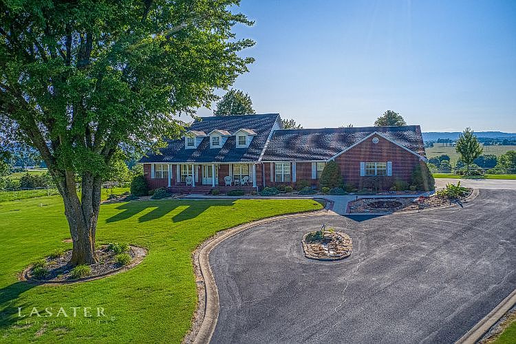 Views all around of the beautiful Ozarks. This home is 1.22 acres with a rolling farm surrounding it. Quality custom construction in this brick maintenance free home. Large kitchen with granite counters, pantry, and island. Double ovens give the family chef lots of options. Large family room open to the sunporch overlooking Gaither Mountain. Master suite includes a walk-in closet and 5 piece master bath. There is a bonus room right across the hall that has many options. Sewing room, study, nursery, or 6th bedroom. Every inch is livable space or storage. The outdoor space includes a covered patio with an additional patio that takes in the view. The three car oversized garage has a level entry into the home. One car garage in basement. The roof was new in 2019.