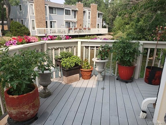 Premium location in the Shores! Right on the pond/fountain with amazing water views from your large wrap around deck that features a retractable awning. The inside has been updated with all 3 bathrooms redone in the past year. Light, bright & spacious with an attached two car garage. Enjoy peaceful, low maintenance living, walking distance to restaurants and stores~ Cherry Creek Schools.