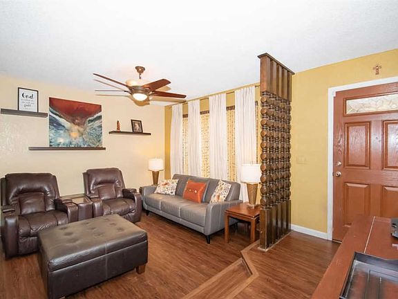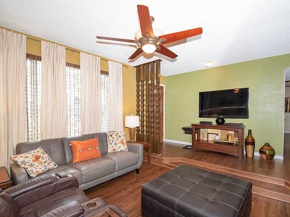 Adorable 4 bed/2 bath home in Villa Hermosa! The kitchen features dark wood cabinets, a breakfast bar, and a window over the sink to let in natural light. There is also faux wood and tile throughout the home, a spacious backyard with swimming pool, and extra concrete for additional parking.