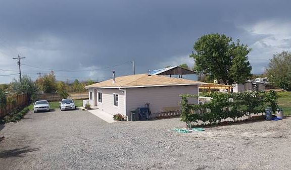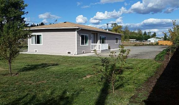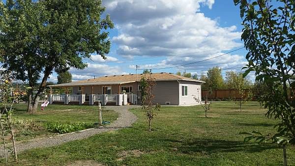 Beautiful 2 acre 3 bed 2 1/2 bath newly upgraded 1400 sq. ft. 3 out-buildings, fish pond, fruit trees, fenced area for farm animals. New front fence, park 2 or more RVs with hook up or semi-truck. New tile, new cabinets in kitchen and bathrooms. Plenty of closet space. Master bath, washer, dryer. Chickens, raspberries, blueberries, apples, pear and plum trees. New 36ft by 12ft covered back deck overlooks it all. Come enjoy.