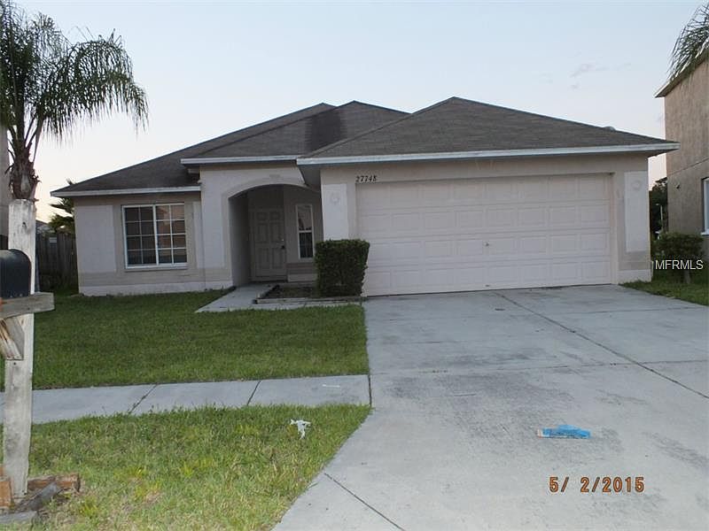 Great price for a single family home in the sought after Northwood community of Wesley Chapel. Spacious four bedrooms, two baths, two car garage, with a backyard overlooking a large pond! (No backyard neighbors). The home has tile floors in all the living and wet areas and carpets in all bedrooms. Kitchen overlooks the great room and dining area. Kitchen with closet pantry, and eat in area. All appliances are included, except for refrigerator. Master bath has dual sink, tub and separate shower. Second and third bedroom share hall bathroom. Fourth bedroom would also make a great office, sits in the back of the house with a view of the large backyard and pond. Inside laundry. Needs some TLC and Your personal touch to make this house your home. You will enjoy a quiet, well maintained street with ample space. Low HOA fees includes a community center with pool, basketball, playground and tennis! Near schools, shopping, Wiregrass Mall, Wesley Chapel Hospital, restaurants. New Outlet shopping mall opening soon! Truly an enjoyable community with great amenities. Short distance to Bruce B Downs, I-75 and I-275. Property sold "AS IS" for seller's convenience.
